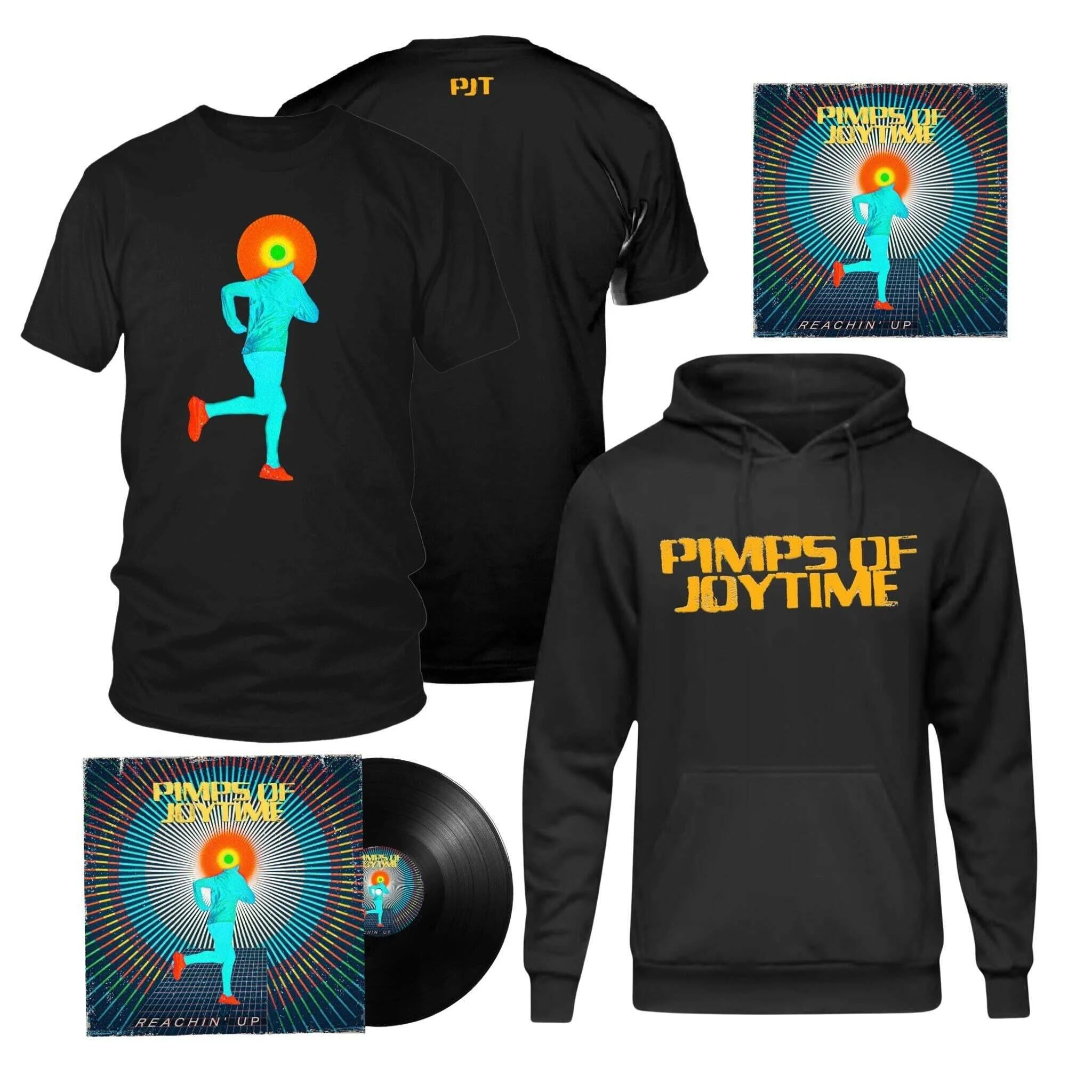 Brian J. and his cohorts are constantly reinventing Pimps of Joytime, both on-stage and in-studio. With a swath of influences drawing extensively from funk, blues, soul, salsa, house, rock, and beyond, their body of work is an evolving musical mosaic deftly tied together with a devilish dance groove. Reachin’ Up finds Brian J inspired by a blossoming romance, stillness in time, and the classic funky disco and seminal dub reggae of yesteryear. The beloved bandleader continues in the tradition of channeling positivity, righteous intention, and subtle spirituality into the essence of Pimps of Joytime.